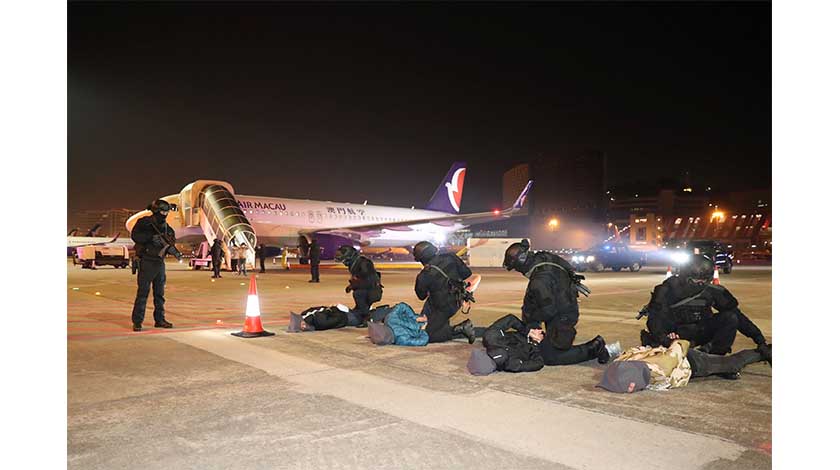 「非法劫持航機演習」每兩年進行一次。是次演習於昨早凌晨二時至五時進行,參與機構還包括警察總局、海關、司法警察局、消防局、衛生局、海事及水務局、民航局、澳門國際機場專營股份有限公司、澳門航空有限公司、澳門保安有限公司及明捷澳門機場服務有限公司。參與人員約250名。