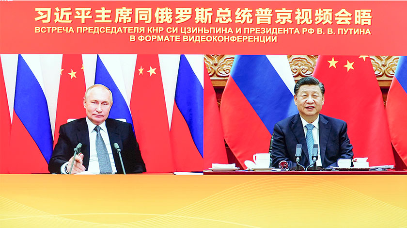 12月15日下午國家主席習近平在北京同俄羅斯總統普京舉行視頻會晤。相約明年2月見。 新華社