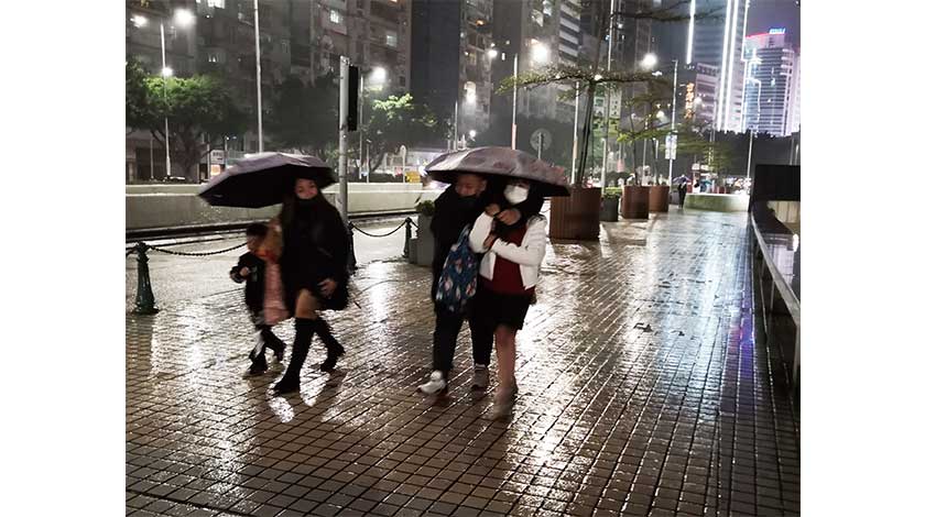 氣象局指,受「雷伊」相關雨帶影響,今日日間雨勢較為頻密及持續時間較長,稍後雨勢逐漸減弱、吹4至5級偏北風,間中6級及有陣風,氣溫約為攝氏13至17度。今晚九時至凌晨零時,內港一帶會因天文潮出現輕微水浸。 多雲。