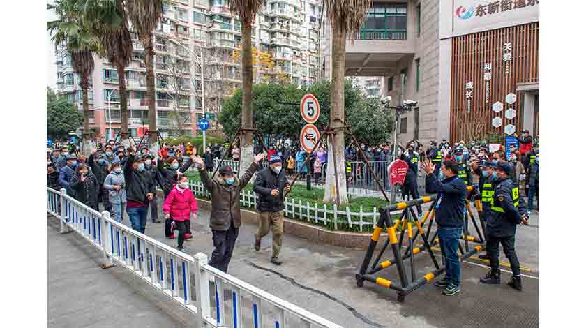 12月21日,不少居民走出東新園小區門口。當日,浙江杭州拱墅區東新園、東新府解封。12月7日該區域報告新冠肺炎感染者實行封閉管理。 中新社