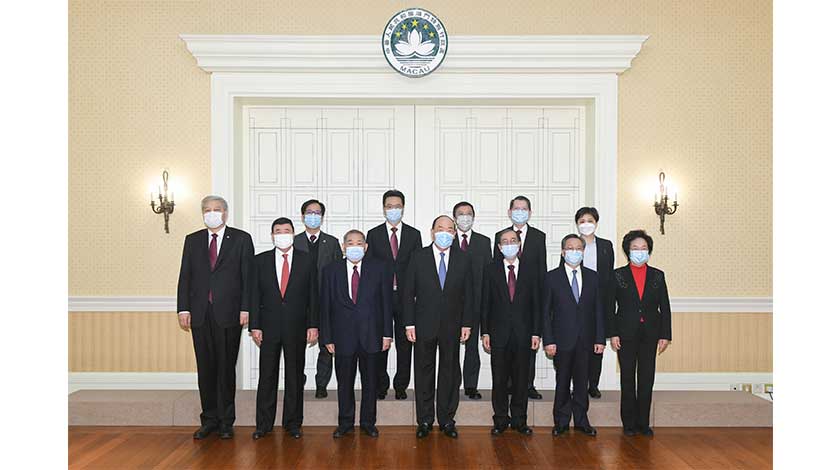 【特訊】行政長官賀一誠昨日在政府總部會見澳門中華總商會會長崔世昌一行(見圖),聽取新一屆領導層介紹未來會務工作,並就疫情防控、中小企支援措施,以及橫琴粵澳深度合作區發展等議題交換意見。