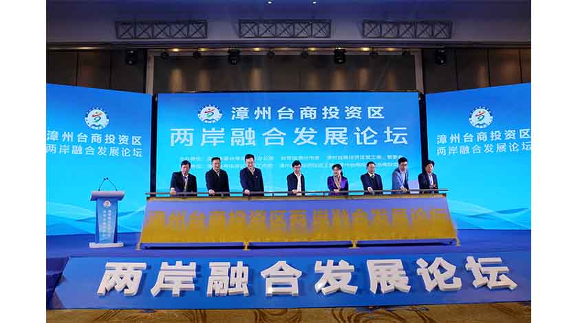 1月11日,福建省漳州台商投資區在漳州舉辦兩岸融合發展論壇。圖為論壇啟動儀式。 中新社