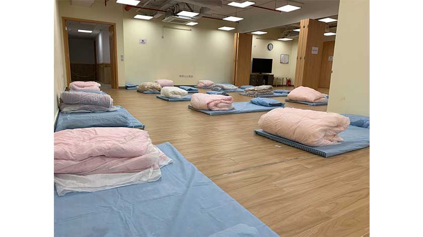避寒中心按照衛生局的指引,做好各項防疫措施,包括:張貼“澳門健康碼行程記錄場所碼”並主動提醒進入場所的人士掃瞄,要求使用者測溫、配戴口罩、與其他人保持 1 米以上距離等。