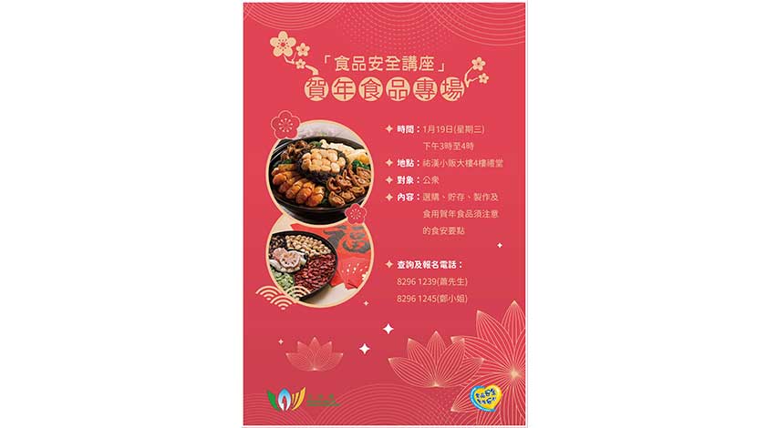 “食品安全講座—賀年食品專場”將於1月19日下午3時至4時,於祐漢小販大樓四樓禮堂舉行,由市政署食安人員講授選購、貯存、製作及食用賀年糖果、瓜子及盆菜等應節食品時,須注意的食安及衛生資訊。春季天氣溫暖潮濕,食物尤其是糕點類產品容易因貯存不當而變質,市政署提醒,切勿將食物過長時間放置於室溫下,倘發霉應立即停止食用。