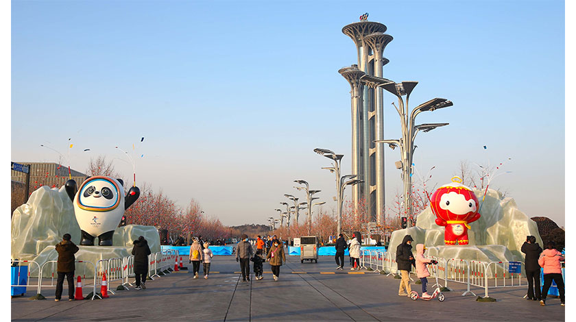 1月16日,北京大屯路,北京2022年冬奧會和冬殘奧會吉祥物『冰墩墩』、 『雪容融』吸引路過的市民拍照打卡。 中新社