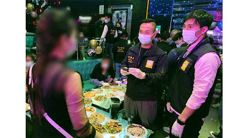 【特訊】為持續淨化社區治安,在警察總局統籌下,司法警察局持續進行“冬防行動2022”反罪惡巡查(見圖)。於2022年1月15日晚上9時至翌日凌晨零時,共派出38名刑事偵查人員前往林茂塘區、皇朝區及新口岸區一帶多間卡拉OK酒吧進行巡查。