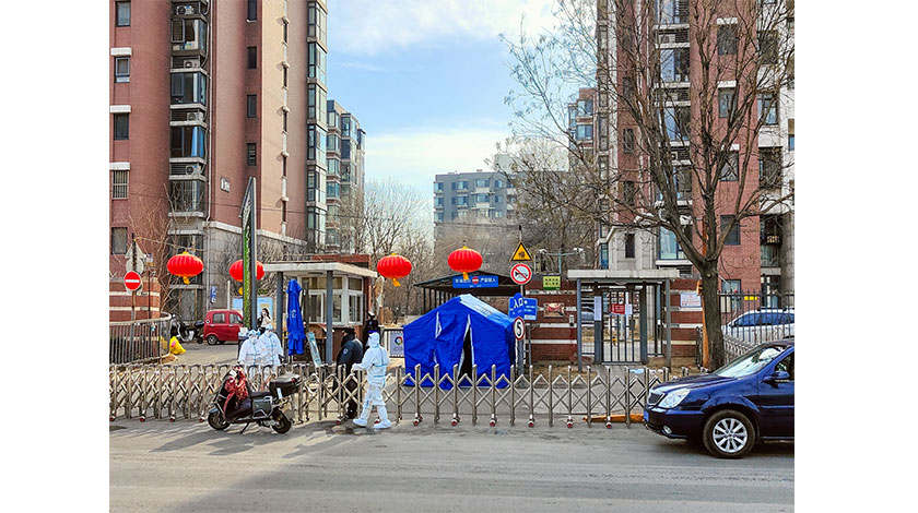 1月18日,北京市一新增病例所在的海澱區百旺茉莉園一期已經封閉,防疫人員在小區入口值守。1月17日0時至1月18日15時,北京市新增2例本土新冠肺炎確診病例和1例核酸檢測陽性者。 中新社
