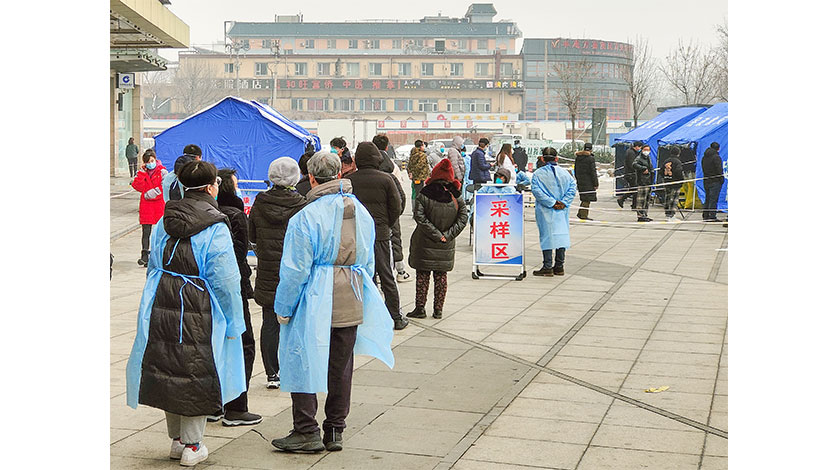 1月23日,北京市豐台區萬柳西園小區附近的一處空地,居民排隊進行核酸檢測。當日,豐台區開展全區核酸檢測。 中新社