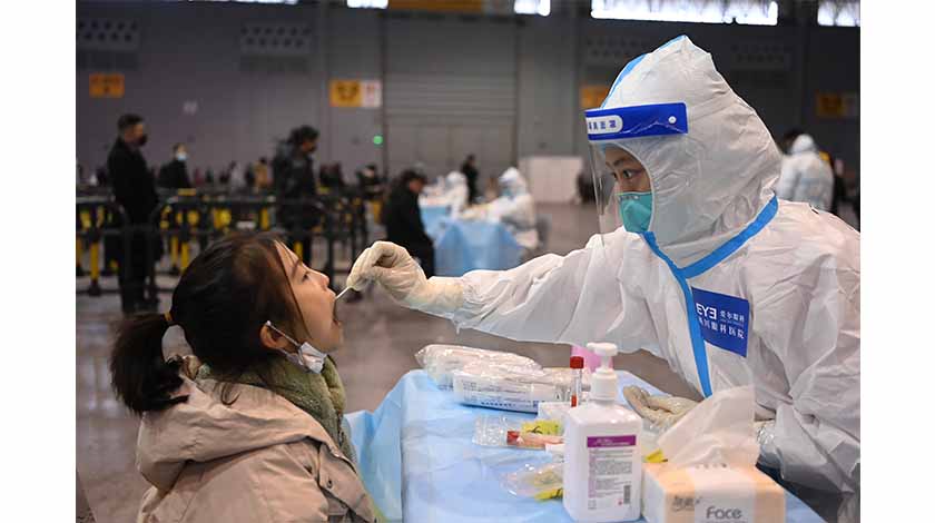 21日,四川成都,市民進行核酸檢測。成都市疫情防控工作新聞發佈會當日下午舉行,官方通報,20日零時至21日12時,成都市累計報告陽性病例9例,其中,確診病例6例,無症狀感染者3例。成都本輪疫情首例本土病例已初步完成新冠病毒全基因組測序,結果為奧密克戎變異株。 中新社
