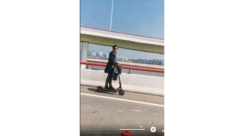 昨日中午十二時四十一分,警方接報一名男子使用電動滑板車於友誼大橋,澳門往氹仔方向行駛,立即派員到友誼大橋將一名正使用電動滑板車行駛的男子截停,並對其進行相關檢控及教育。