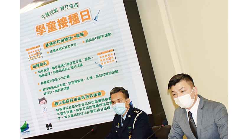 【本報訊】教育及青年發展局非高等教育廳代廳長張子軒表示,有意接種疫苗的三至十一歲學生超過二萬人。教青局與衛生局將於本星期六及星期日的早上九時至傍晚六時,預留綜藝館作為學生的疫苗接種專場。