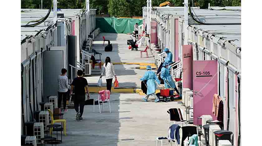 3月14日,香港新冠病人陸續被送往社區隔離設施(方艙醫院)入住。 截至13日,不到兩星期中央援港的方艙醫院已交付四個,共提供約8900張應急隔離床位,協助香港達到“早發現、早隔離、早治療”的抗疫策略。圖為新田社區隔離設施使用情況。 中新社記者 李志華 攝
