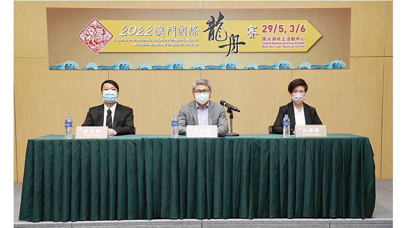 【特訊】由體育局及中國澳門龍舟總會主辦,市政署及行政公職局協辦的“2022澳門國際龍舟賽”活動,將於本年5月29日及6月3日在南灣湖水上活動中心舉行。賽事組委會昨(16)日舉行新聞發佈會,介紹活動詳情。出席新聞發佈會的嘉賓包括體育局局長潘永權、中國澳門龍舟總會會長賴百齡及體育局副局長林蓮嬌。