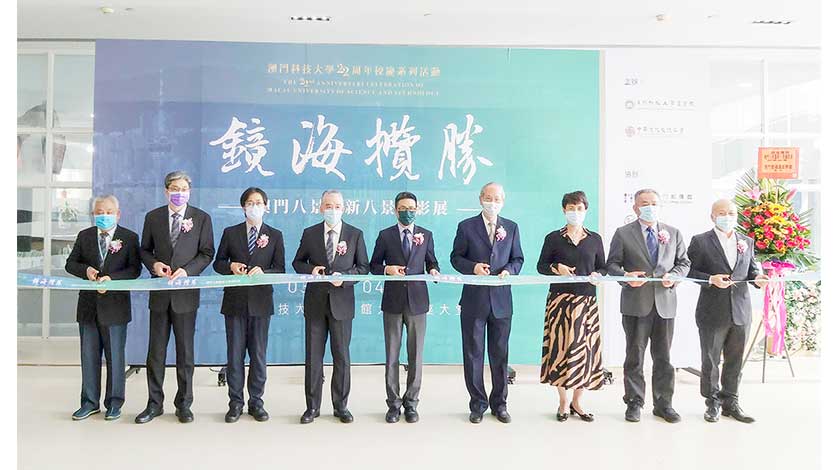 【特訊】澳門科技大學22周年校慶之際,由澳門科技大學圖書館和中華文化交流協會主辦、澳門影像館和唐廷樞研究中心協辦的「鏡海攬勝——澳門八景暨新八景攝影展」於3月16日在大學N座圖書館大樓大堂揭幕。澳門旅遊局程衛東副局長、中華文化交流協會李沛霖會長、澳門文化局公共圖書館管理廳呂志鵬廳長、澳門科技大學唐嘉樂副校長、圖書館趙洗塵館長、人文藝術學院張志慶院長、社會和文化研究所林廣志所長、唐廷樞研究中心戴龍基主任、澳門影像館陳顯耀館長等出席。