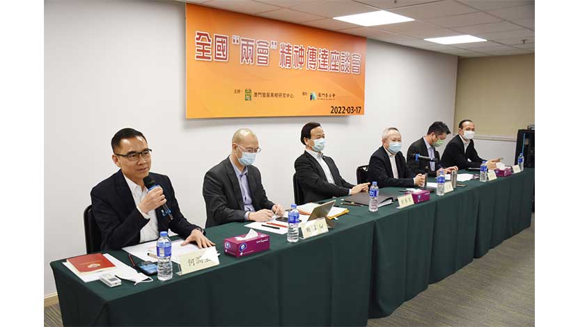 【特訊】日前,澳門發展策略研究中心舉行2022年全國“兩會”精神傳達座談會,澳區全國人大代表劉藝良、蕭志偉、施家倫、何敬麟,澳區全國政協委員劉雅煌、何潤生分別作傳達全國兩會精神的報告,眾多社會賢達和中心成員出席參加會議,圍繞多個領域進行深層討論,充分發揮智庫功能與獨特優勢,奮力推動新時代背景下的“一國兩制”成功實踐行穩致遠。