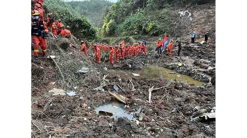 3月22日,工作人員在墜機事故現場搜索黑匣子。當日,在東航MU5735客機墜毀事故現場,搜救人員進入事故核心區,全力搜索黑匣子。新華社