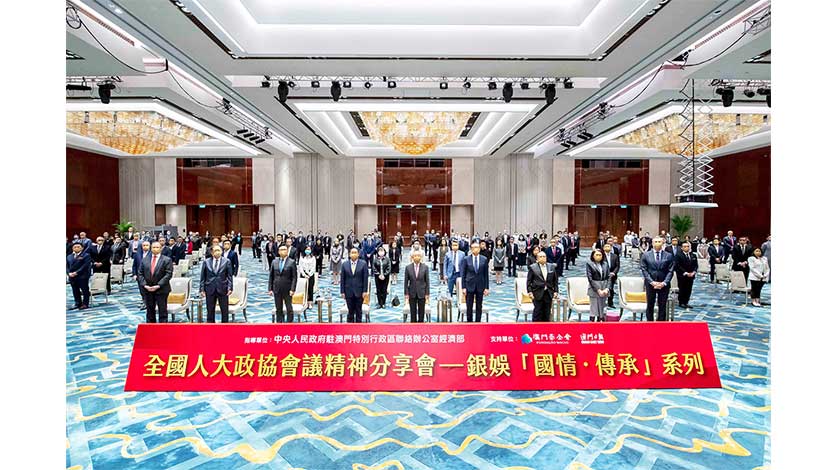 【特訊】銀河娛樂集團(下稱「銀娛」)多年來積極推動團隊成員深入認識國家概況、發展趨勢及機遇,以增進其對國情的了解。隨著十三屆全國人民代表大會五次會議及中國人民政治協商會議十三屆全國委員會五次會議(下稱「兩會」)在三月中於北京圓滿閉幕,由中央人民政府駐澳門特別行政區聯絡辦公室(下稱「中聯辦」)經濟部指導、澳門基金會及《澳門日報》支持、銀娛主辦的「全國人大政協會議精神分享會—銀娛『國情‧傳承』系列」(下稱「分享會」)於昨(25)日舉行。是次分享會邀請到中聯辦經濟部處長孫耀華出席;並邀請到全國人大代表、《澳門日報》社長陸波;全國政協委員、澳門基金會行政委員會主席吳志良博士;以及全國政協委員、銀娛副主席呂耀東就今年「兩會」,傳達意義深遠的「兩會」精神,並分享相關情況及個人體會。