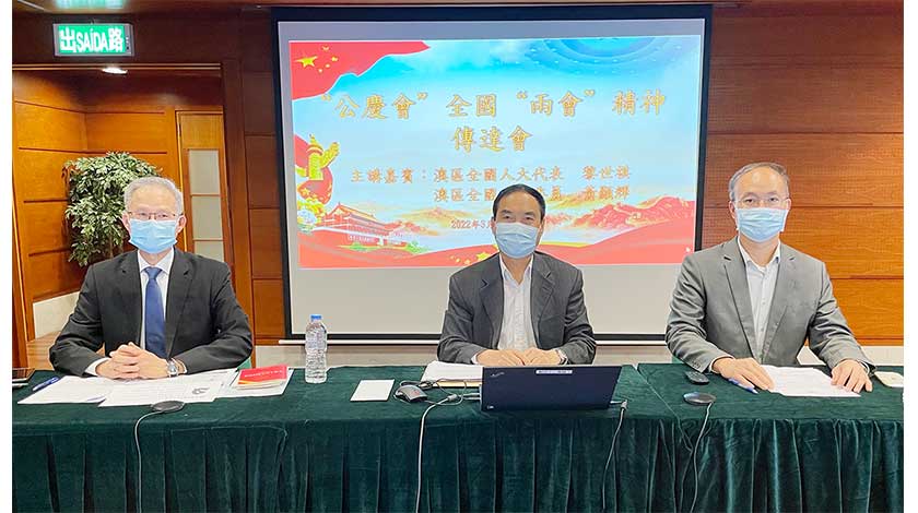 【特訊】於本月25日傍晚,澳門特區公務員團體慶祝澳門特區成立周年籌委會與行政公職局,在公共行政大樓以線上直播形式合辦二○二二年全國人大和政協“兩會”精神傳達會,三十公務員團體約二百二十人參加。