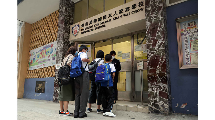 4月19日,全港小學分階段恢復半日面授課堂,所有教職員及學生每日返校前須進行一次快速抗原測試 (中通社)