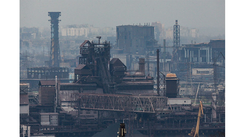 這是4月19日在馬裡烏波爾拍攝的亞速鋼鐵廠。