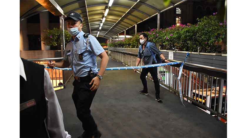 警方以安全為由封鎖十六浦對開的行人天橋,驅散駐橋觀看拍攝者。