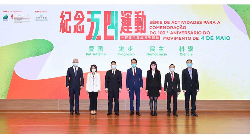 同日上午,教青局與紀念“五‧四”青年節系列活動籌備委員會於澳門科學館會議廳舉辦紀念“五四運動”一百零三周年系列活動啟動禮,並於啟動禮結束後舉行“五四精神線上研討會”。研討會邀請到澳門科技大學副校長龐川和中央團校(中國青年政治學院)青年運動研究中心主任、團研所所長吳慶教授,向現場的青年學生以五四精神為主題作分享,以及介紹共青團建團一百周年的發展事跡,讓澳門青年了解“五四運動”後愛國組織及社團的成立歷程。