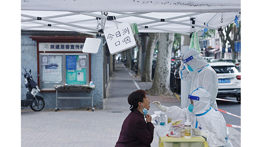 月5月11日,在上海市黃浦區瑞金二路臨時核酸檢測採樣點,市民進行核酸檢測採樣。近期上海開展了基於三區劃分的『抗原+核酸』組合篩查。 中新社