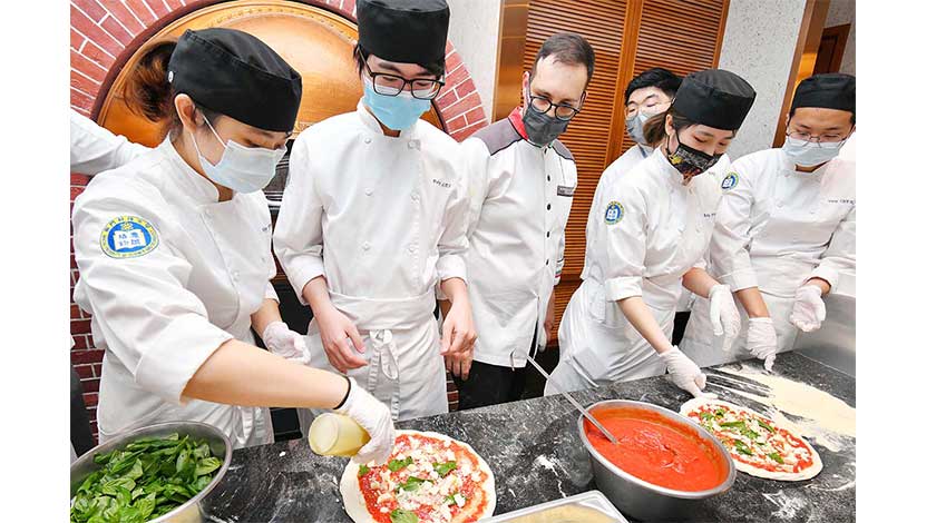 當奧豐素1890意式料理Maurizio師傅以製作澳門最正宗的拿坡里薄餅聞名。他在工作坊上向學院餐飲管理專業大二至大四的學生講解如何以來自意大利當奧豐素農場的可持續食材製作薄餅,並示範如何以傳統工藝製成的烤爐,在華氏一千度的高溫下於三分鐘內烘製新鮮出爐薄餅,以及如何能確保薄餅的厚薄程度及餡料比例恰到好處的訣竅。Maurizio師傅還分享了其對烹飪的見解和理論,談及他初期在澳門製作薄餅麵糰時應對本地溫度與濕度變化所經歷的挑戰。學生們於現場親自嘗試製作薄餅,並於交流期間向資深薄餅師傅踴躍提問。對一眾學生而言,這是一次難得而寶貴的學習經驗。