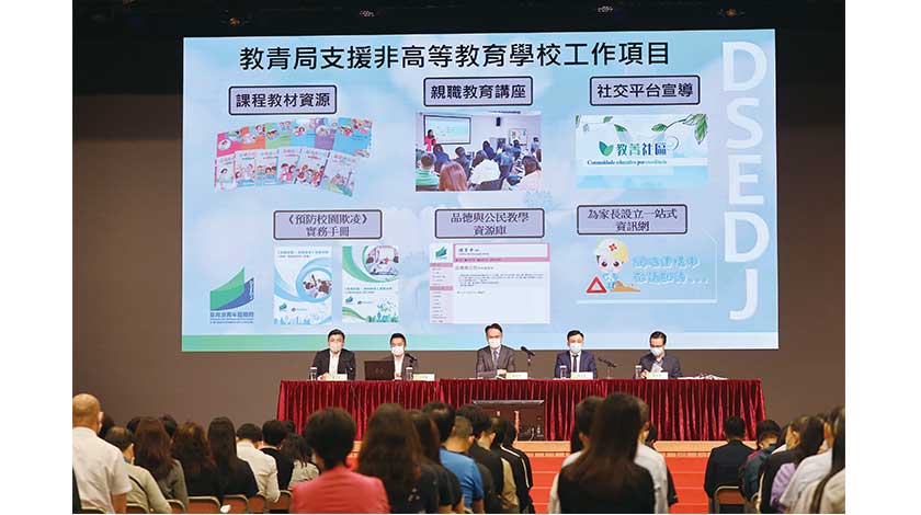 為進一步關心青少年學生身心健康,非高等教育廳廳長張子軒介紹了學生身心健康支援工作,與非高等教育學校探討在“校園危機管理專責小組”成員中,增設“校園身心健康工作小組”,從而幫助學校感應和辨識高危學生,希望能提早預防,及時發現,適切介入。教青局稍後亦會透過指引、教材和網頁資訊,進一步支援學校開展相關工作。