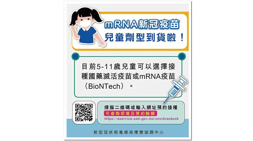 另外,第79/2022號行政長官批示列明,信使核糖核酸疫苗(mRNA疫苗)適用於年滿五歲者,之前的適用年齡為滿十二歲。