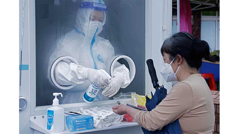 5月29日,工作人員在上海市黃浦區三牌樓路核酸採樣工作站幫助採樣完的市民手部消毒。當日,在上海市新冠肺炎疫情防控新聞發佈會上,上海市政府新聞發言人尹欣通報上海市新型冠狀病毒肺炎疫情防控工作領導小組辦公室發佈的《關於調整和優化核酸檢測時間要求的通知》。明確了自6月1日零時起,進入有明確防疫要求的公共場所和搭乘公共交通工具的人員,須持72小時內核酸檢測陰性證明。 (中新社記者 殷立勤 攝)