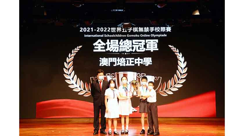 世界五子棋校際賽-澳門培正中學獲全場總冠軍成為最大黑馬 培正學校組織123名小一至小六的學生參加B、C組比賽,并在比賽中一路高歌, 4場比賽獲均為全場冠軍,並獲得最後的“全場總冠軍”殊榮。個人組別由澳大附屬應用學校袁華俊同學取得“B組個人總冠軍”。