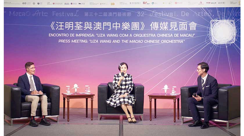 【特訊】由文化局主辦的第三十二屆澳門藝術節閉幕鉅獻《汪明荃與澳門中樂團》將於6月1日及6月2日於威尼斯人劇場獻演,主辦單位昨日於威尼斯人會議室舉行傳媒見面會(見圖),知名藝人汪明荃及文化局演藝發展廳廳長鄭繼明出席,與本澳媒體會面,分享演出心情和介紹節目亮點。