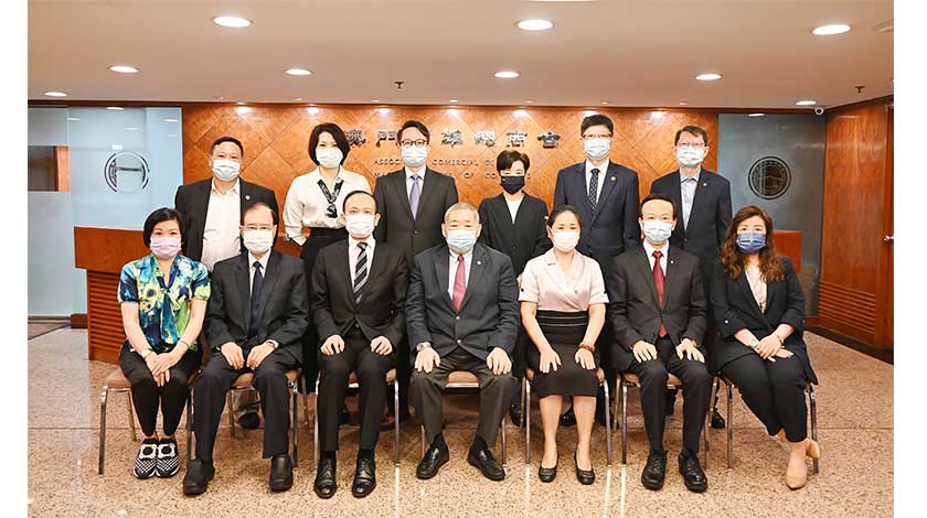 【特訊】澳門物業管理業商會常務會長劉雅煌一行九人昨日上午到訪澳門中華總商會,受到該會會長崔世昌,副理事長崔煜林、劉藝良,常務理事許樂敏、李俊鳴,秘書長區榮智等的熱情接待。