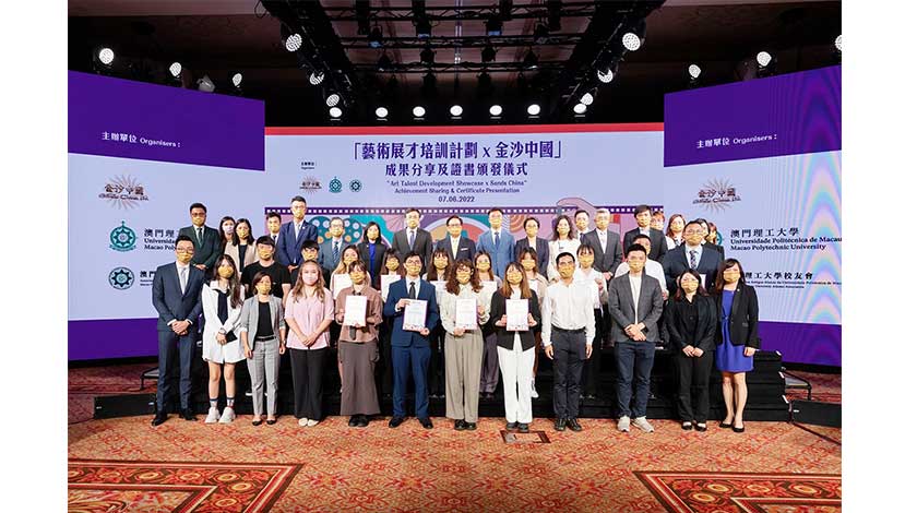 【特訊】金沙中國周二於澳門倫敦人為首批完成「藝術展才培訓計劃x 金沙中國」項目的18名澳門理工大學學生及年青校友舉行成果分享會及證書頒發儀式。