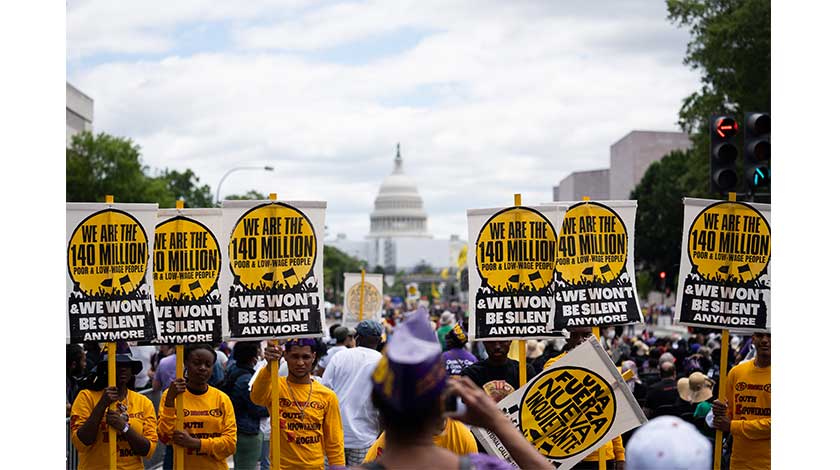 『我們實在是受夠了!』——美國民眾集會抗議種族歧視和經濟不公 6月18日,在美國首都華盛頓,示威者在國會大廈附近抗議。(新華社)
