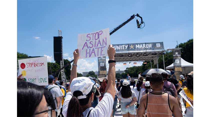 6月25日,在美國首都華盛頓,示威者參加反亞裔仇恨集會。美國亞裔人士25日午後在首都華盛頓市國家廣場舉行集會,呼籲停止針對亞裔的仇恨及暴力犯罪行為。(新華社)
