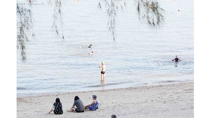 7月11日,香港市民於屯門蝴蝶灣泳灘消暑。天文台在當天下午3時錄得氣溫34度,多區達33度或以上。上水更是錄得36.5度。天文台表示,未來兩三日大致天晴及酷熱。(香港中通社)