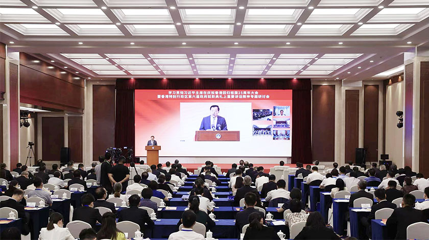 夏寶龍表示,重要講話蘊含著科學的理論邏輯,深刻闡明“四個必須”的規律性認識,揭示了“一國兩制”實踐過去為什麼能夠成功、未來如何取得更大成功的密碼。習主席在講話中用“四個必須”精闢總結了25年來“一國兩制”香港實踐的寶貴經驗和深刻啟示,是“一國兩制”理論的豐富和發展,是“一國兩制”實踐行穩致遠的科學指引。