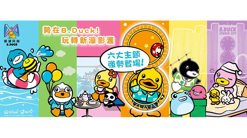 超人氣巨星B.Duck食住玩全方位進駐新濠影滙每一角落。當中包括一個六米高巨型吹氣B.Duck和多個B.Duck大型萌爆打卡點任你大影特影B.Duck小黃鴨、全澳唯一B.Duck主題酒店客房與可愛B.Duck一起Staycation潮玩歡樂度假。此外,B.Duck及好友們更會現身與大眾見面和拍照留念、賓客亦可在水上樂園與B.Duck造型大水泡親身體驗全長 450 米的「綠野遊踨」奇幻漂流之旅。玩轉新濠影滙後,一眾賓客更可享用一系列B.Duck造型美食餅點由Duck你食輕鬆打卡。