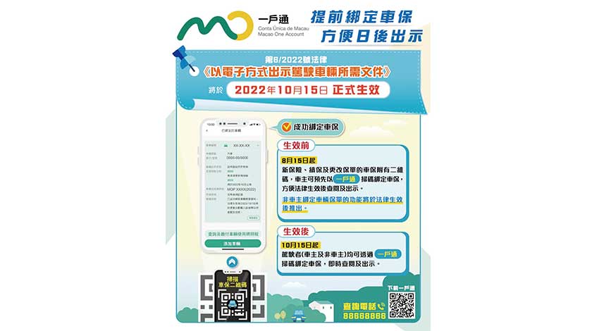 為配合上述法律的實施,由即日(8月15日)起,6間保險公司在新購買的保險、續保及更改保單的文件內印有車保二維碼,車主可預先透過“一戶通”掃碼綁定該車保。