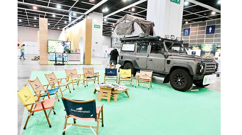 受疫情影響,人們逐漸由外遊,轉而探索更多本地遊方式。香港前自行車運動員何兆麟第二年參展,以露營元素佈置展區。他告訴記者,這兩年越來越多人傾向選擇露營,公司每個月都可收到約20個租車及相關設施的訂單。