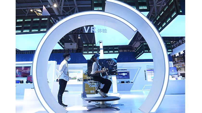8月22日,2022中國國際智能產業博覽會在重慶開幕,來自國內外的500多家參展單位通過線上或線下方式,集中展示大數據智能化科技新成果,推動智能科技和產業加快發展。圖為展覽現場的VR體驗吸引參觀者。 中新社
