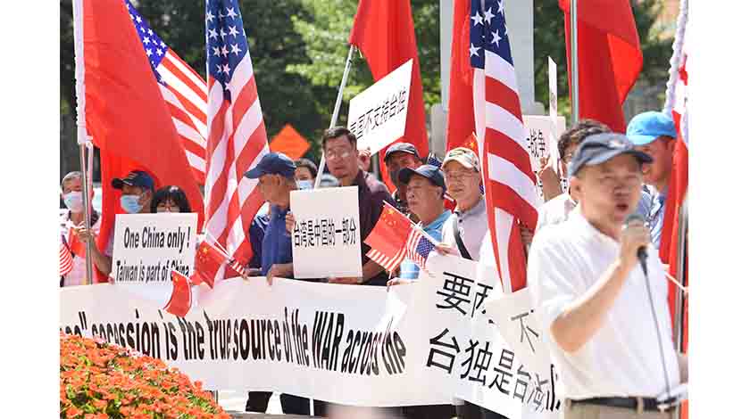 當地時間8月28日,美國大華府及費城僑學界社團在位於華盛頓的“台北經濟文化代表處”樓前舉行抗議示威,表達堅決反對“台獨”,維護兩岸和平,維護中美關係健康發展的強烈呼聲。 中新社