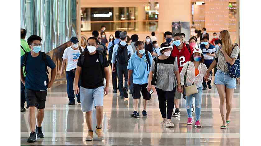 8月31日,香港特區政府衛生署衛生防護中心通報,香港新增9495宗新冠病毒陽性病例,當中有9267宗為本地病例。圖為市民于金鐘出行(中新社)