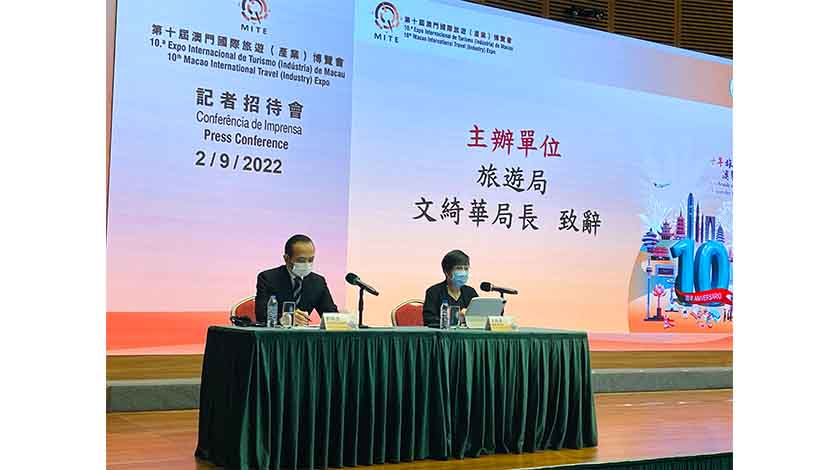旅遊局與澳門旅行社協會昨午假科學館會議中心,舉行“旅博會”記者會,旅遊局局長文綺華、副局長程衛東及許耀明、以及澳門旅行社協會會長劉雅煌等出席。