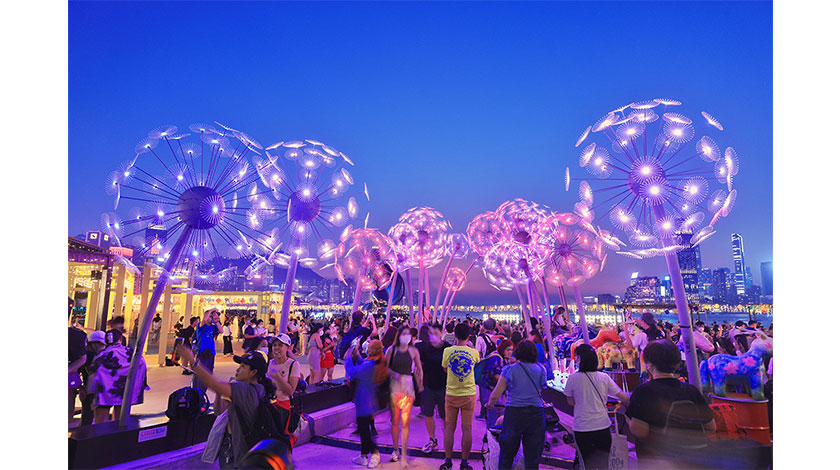 9月12日,香港東岸公園張燈結彩,人頭攢動,不少市民前來歡度中秋假期最後一日。(香港中通社)