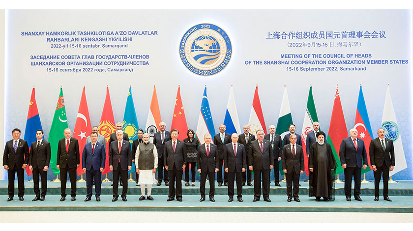 當地時間9月16日,國家主席習近平在撒馬爾罕國際會議中心出席上海合作組織成員國元首理事會第二十二次會議並發表重要講話。這是大範圍會談前,與會各方集體合影。新華社
