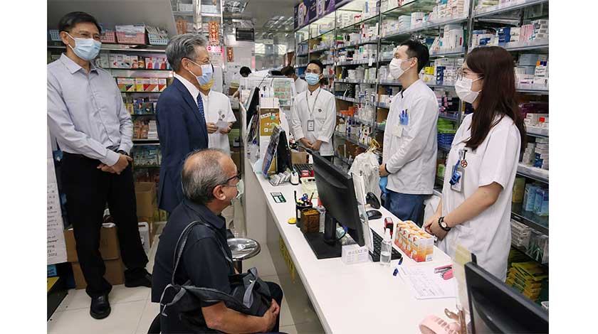 【特訊】『協議藥物處方分段取藥措施』昨日起正式實施,衛生局副局長、仁伯爵綜合醫院郭昌宇院長、資訊科技廳梁基雄廳長、仁伯爵綜合醫院行政廳趙穎廳長、財務管理廳張綺雯廳長等,中午到協議藥房瞭解首日運作情況,並聽取了藥房工作人員及領取藥物人士的意見。