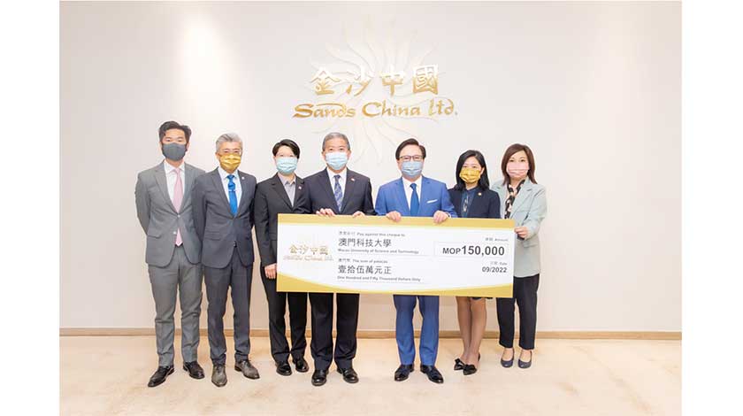 【特訊】金沙中國向澳門科技大學捐贈十五萬元澳門幣獎助學金。捐贈儀式於9月16日上午假澳門威尼斯人舉行。金沙中國有限公司總裁王英偉博士向澳科大副校長鄺應華送交十五萬元澳門幣獎助學金,繼續鼓勵澳科大學生努力學習。